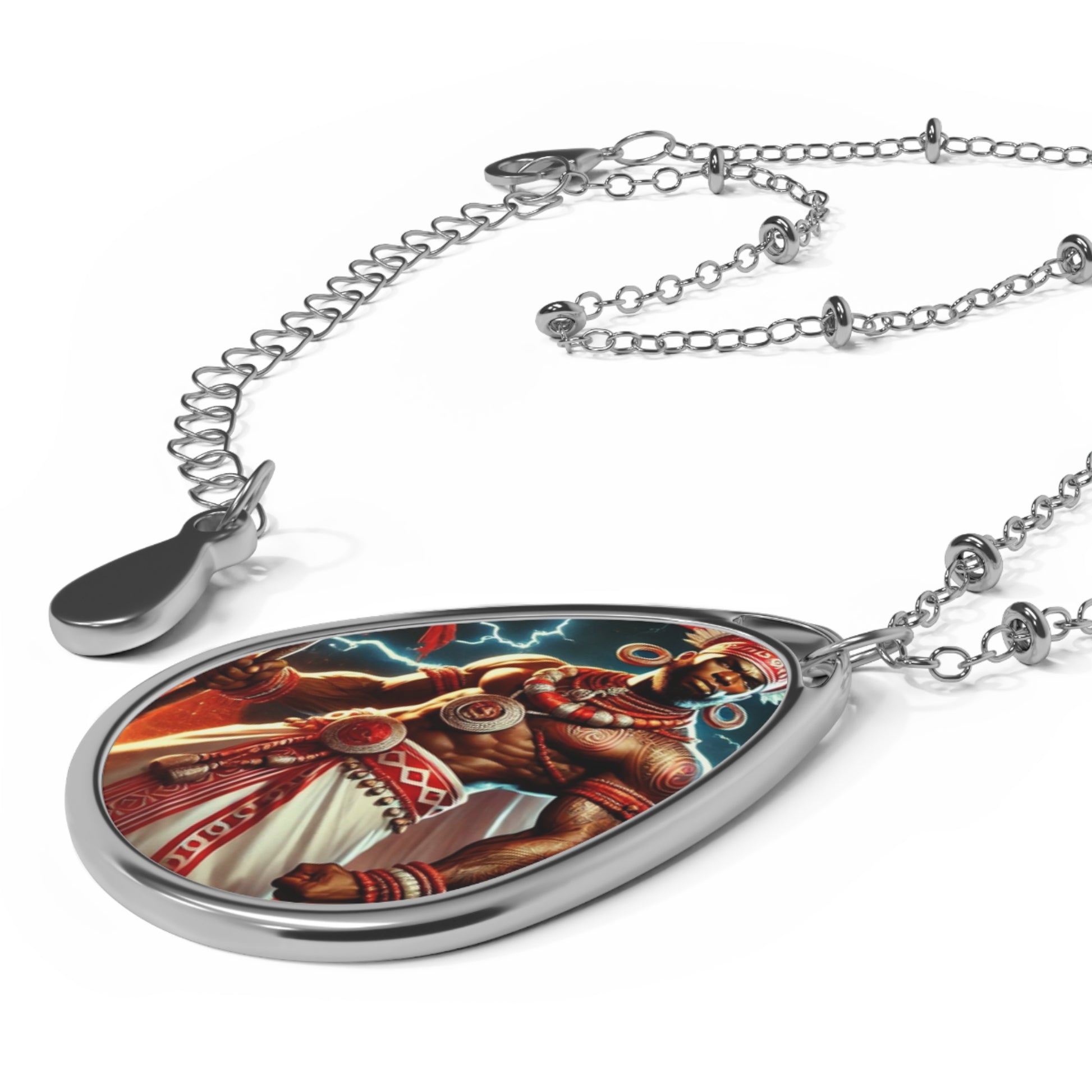 Celebrate the spiritual essence of the Orisa Sango with this beautifully crafted necklace, designed to embody harmony and duality. The pendant features a robust zinc alloy construction for a sleek, durable finish, paired with an elegant aluminum print panel that showcases intricate, personalized designs inspired by Yoruba culture. Its unique elliptical shape adds a modern yet timeless touch, making it the perfect accessory for any occasion. Whether as a personal statement piece or a thoughtful gift for a loved one, this necklace blends tradition with contemporary craftsmanship, bringing meaning and style together in one wearable work of art.