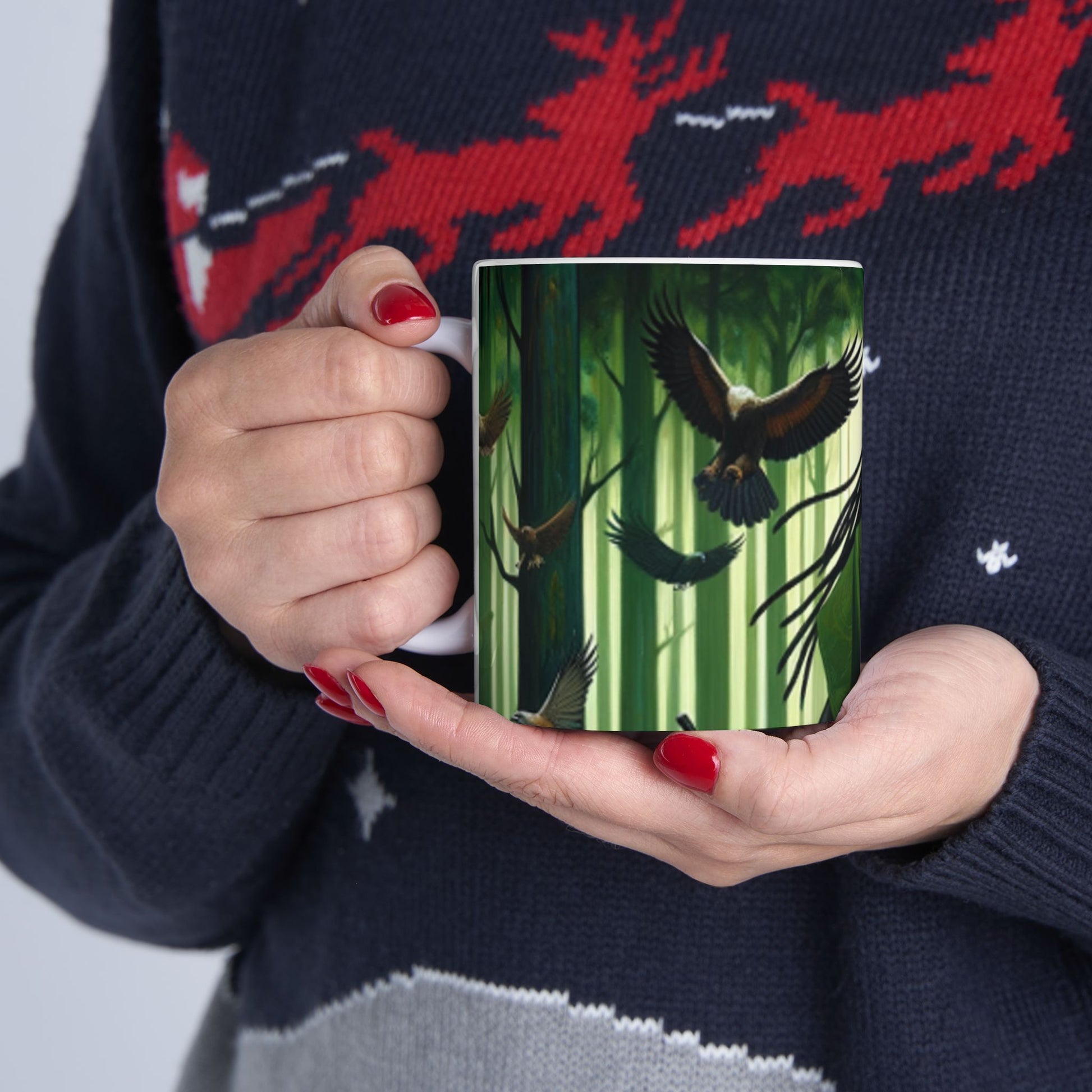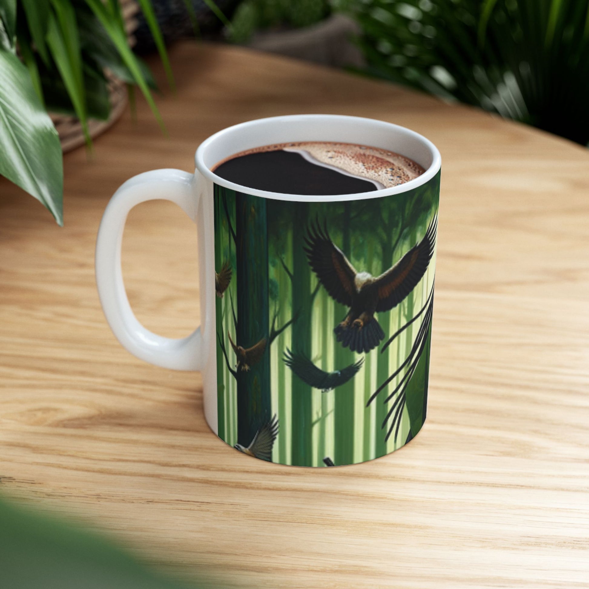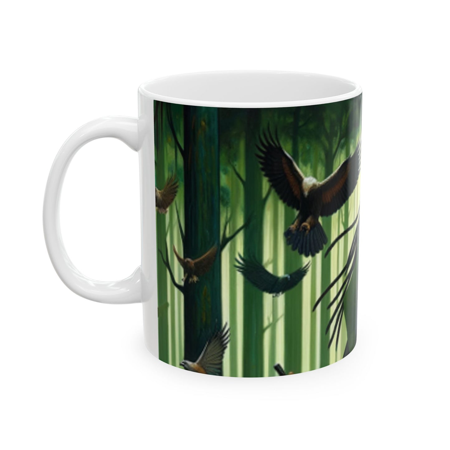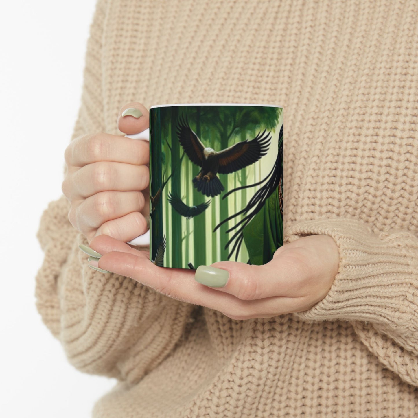 Embrace the spirit of Osoosi Orisa with our 11-oz ceramic mug. Perfect for your daily brew, this mug offers a blend of tradition and style, making each sip a moment of reverence and relaxation.