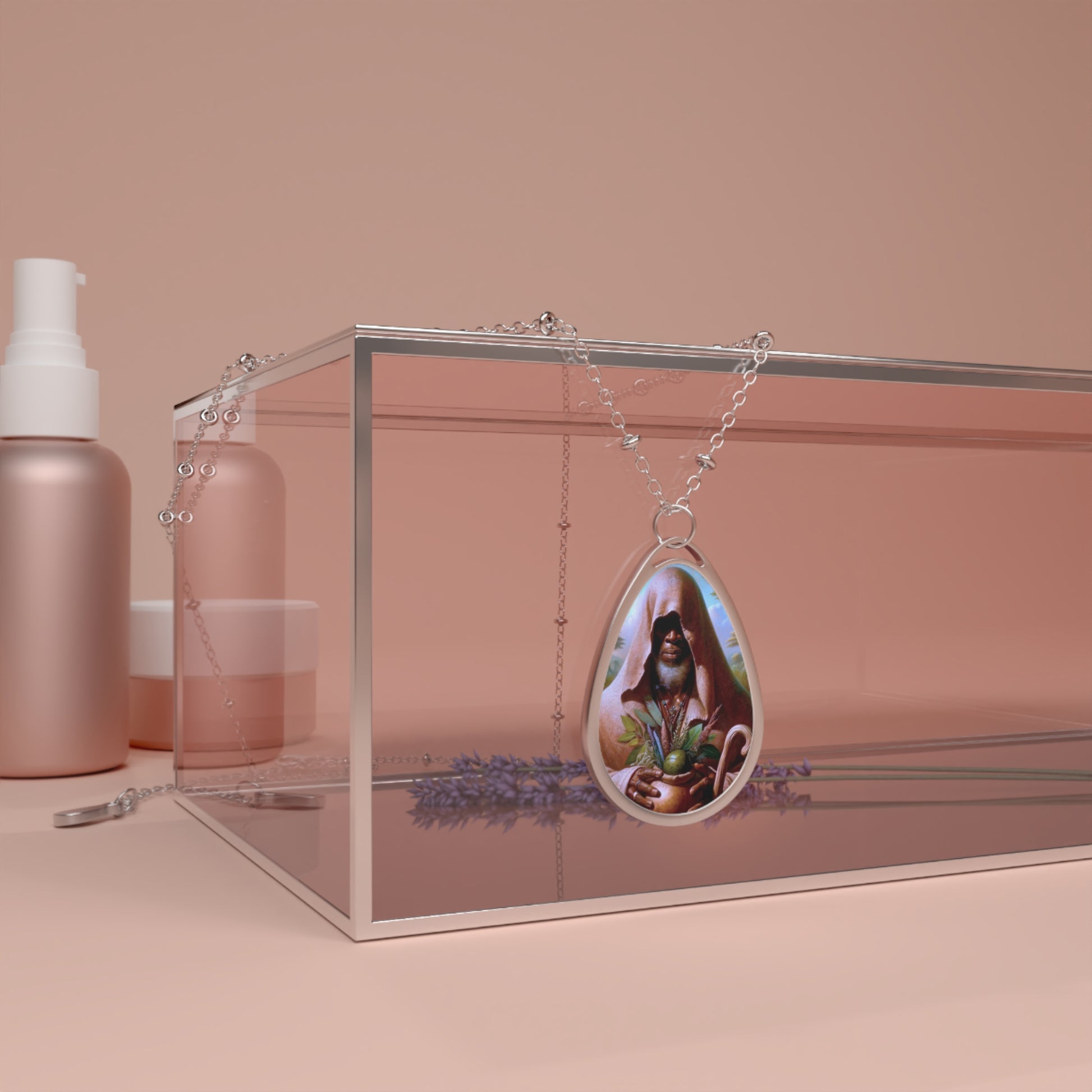 Celebrate the spiritual essence of the Orisa Obaluaye with this beautifully crafted necklace, designed to embody harmony and duality. The pendant features a robust zinc alloy construction for a sleek, durable finish, paired with an elegant aluminum print panel that showcases intricate, personalized designs inspired by Yoruba culture. Its unique elliptical shape adds a modern yet timeless touch, making it the perfect accessory for any occasion. Whether as a personal statement piece or a thoughtful gift for a loved one, this necklace blends tradition with contemporary craftsmanship, bringing meaning and style together in one wearable work of art.